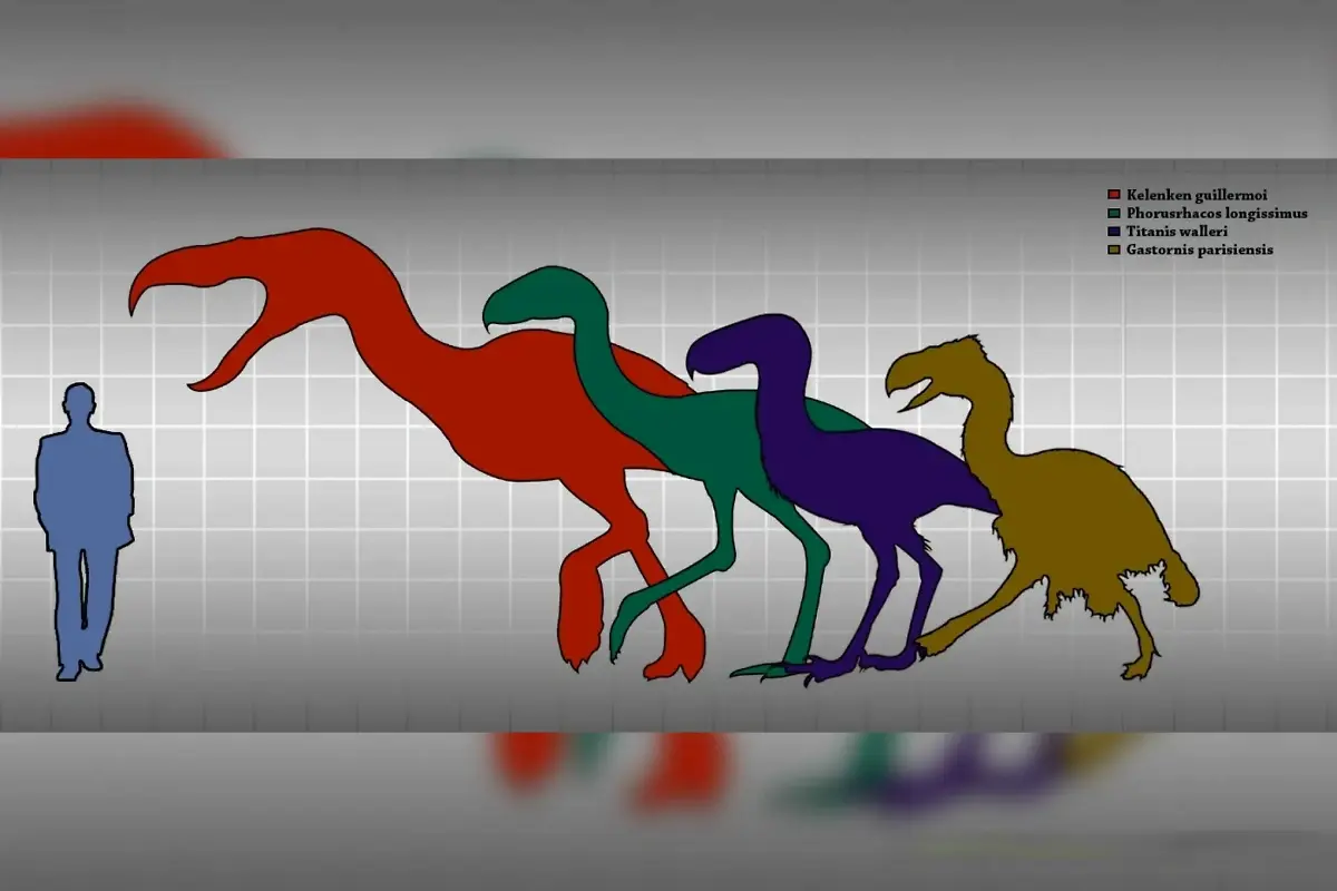 这些怪物属于Phorusrhacidae科。该科最古老的代表可追溯到始新世,大约在5000 - 5500万年前出现在地球上,约10万年前灭绝。古生物学家认为,他们已经发现了最大的“恐怖鸟”之一。他们发现,这只“恐怖鸟”甚至比克伦肯号(下图中红色部分)还要大。