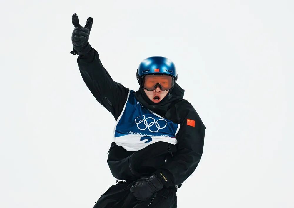 2月7日,中国选手苏翊鸣在第二跳后。新华社记者 胡超 摄